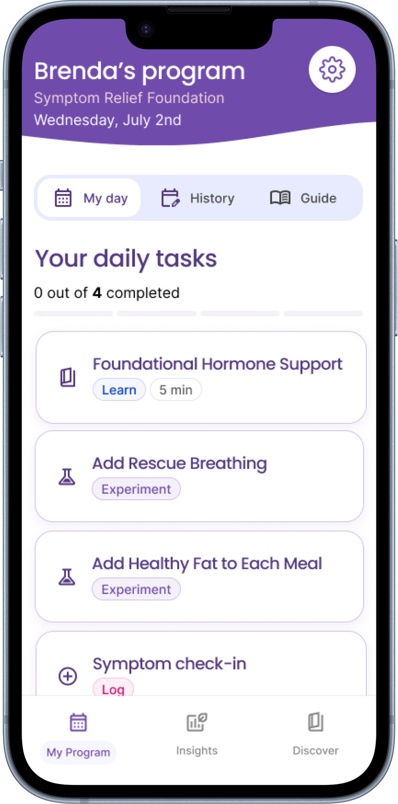 Get just-in-time, guided support when symptoms like hot flashes hit.